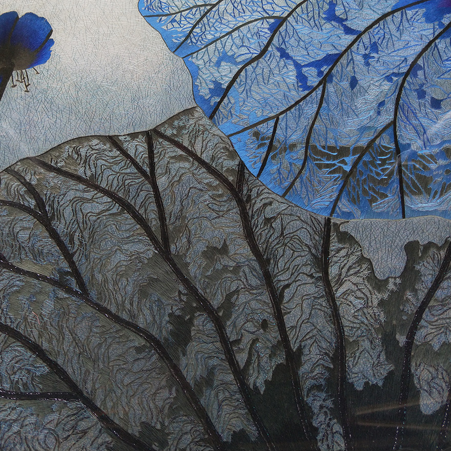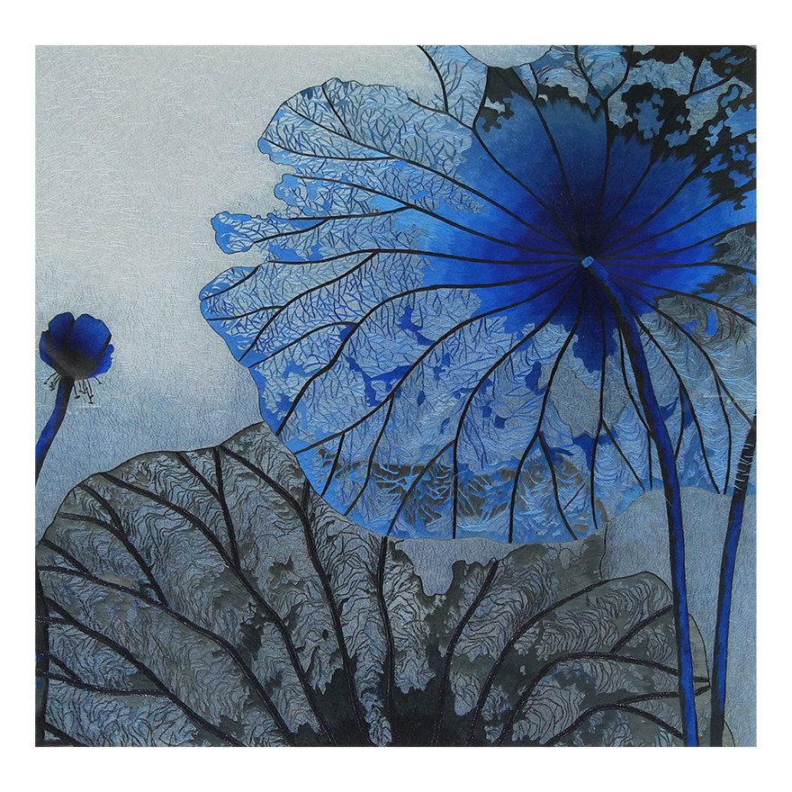 (Artisan Embroidery) pure hand embroidered living room decoration hanging painting < Blue ho > Su embroidery real silk
