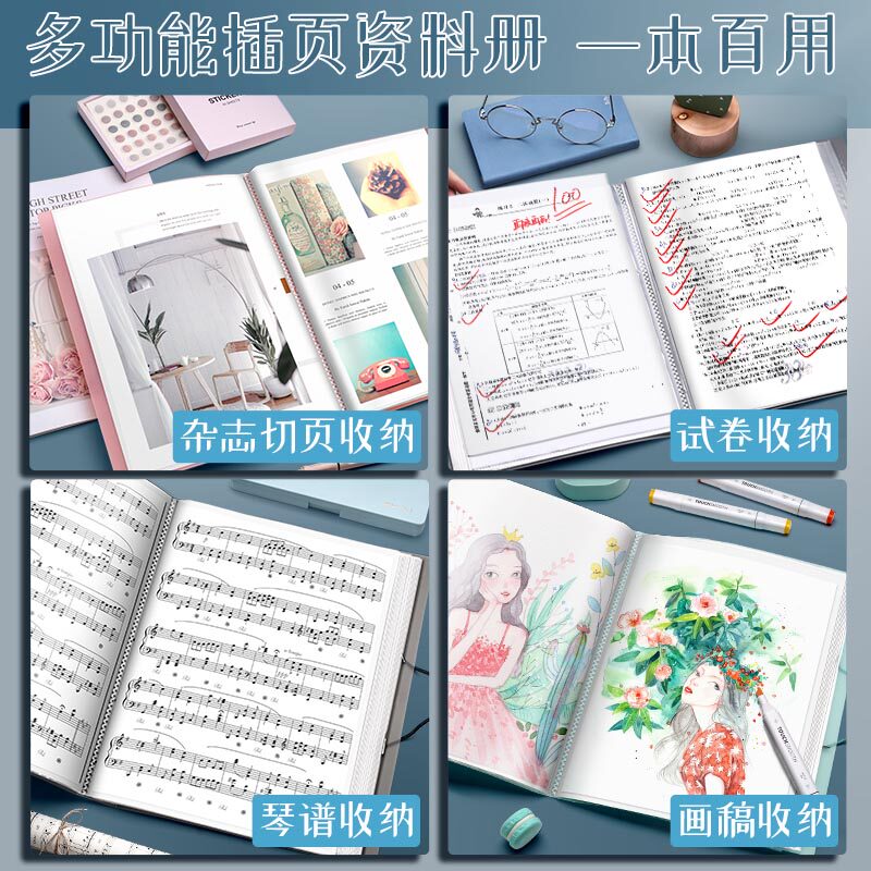 a4 folder transparent insert page paper collection bag 100 page information book file contract clip curly finishing deviner multilayer file booklet bag for study office supplies loose-leaf music sheet