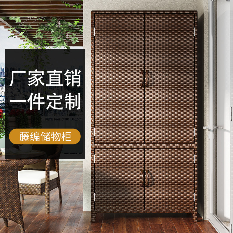 Outdoor rattan courtyard locker shoe cabinet outdoor balcony home large-capacity wardrobe locker waterproof cabinet