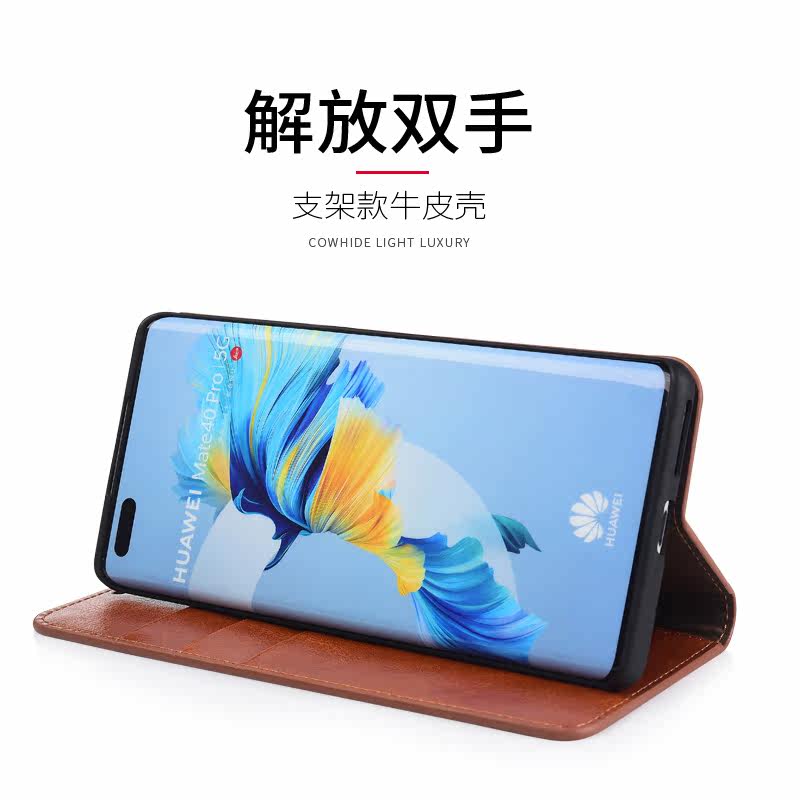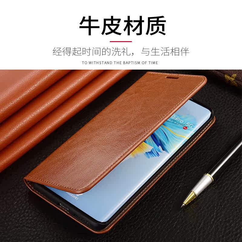 Suitable for Huawei mate40 clamshell leather mobile phone protective shell cowhide bracket one double-sided all-inclusive lens anti-fall business leather m40 protective sleeve female male female female mate30pro0 leather