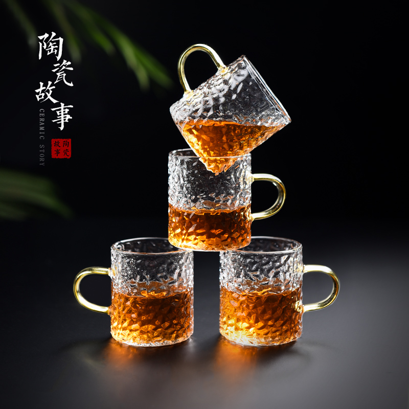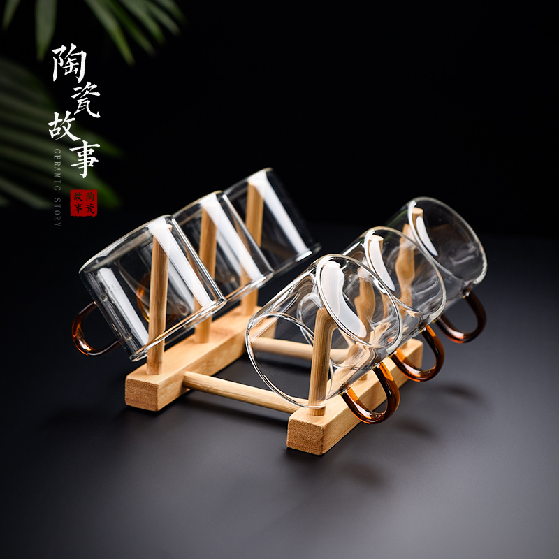 Ceramic Story Glass Tea Cup Set household with cup frame Kung Fu Tea Cup 6 packed cup
