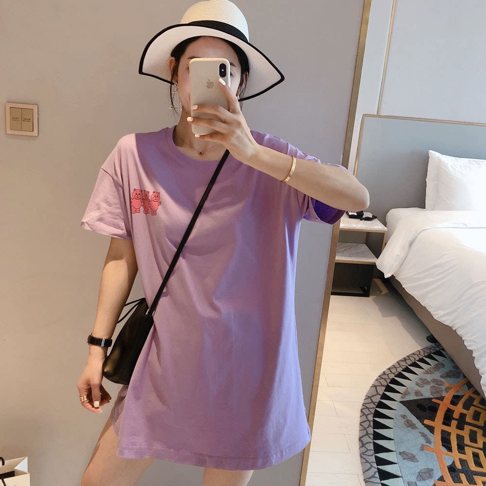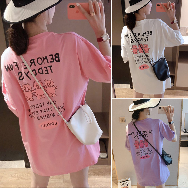 Mid-length loose large bear T-shirt women short sleeve 2022 summer new salt fried street ins trendy brand cotton top