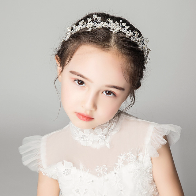 Children's garment headdress Sen - haired pearl in 2021 new dress model walking show flower child crown Korea