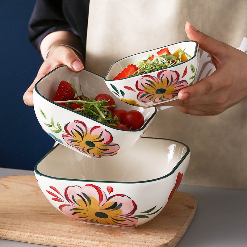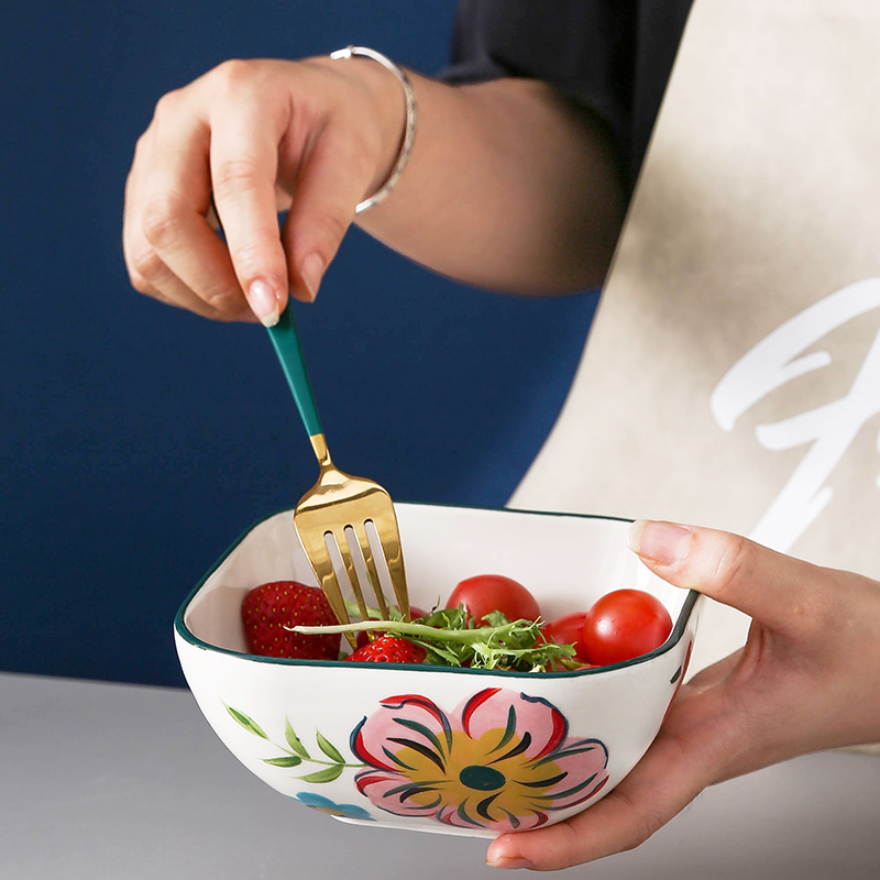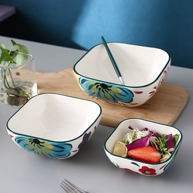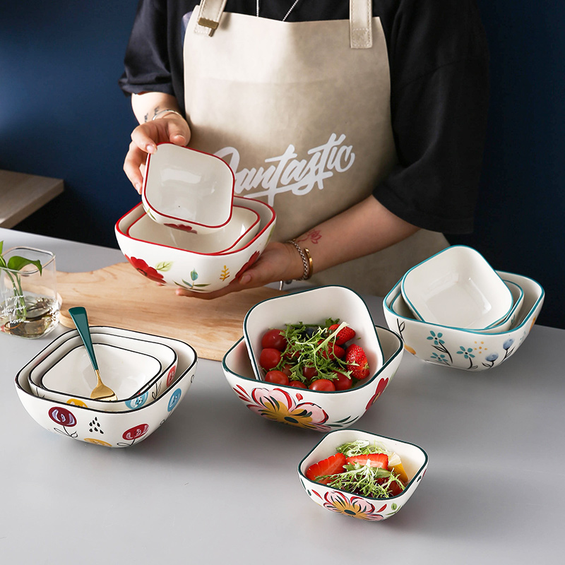 Creative Personality Fruit Salad Bowl ceramic Home Eating Bowls Single Square Soup Bowl Cute Teen Bubbling Noodles Small Bowl