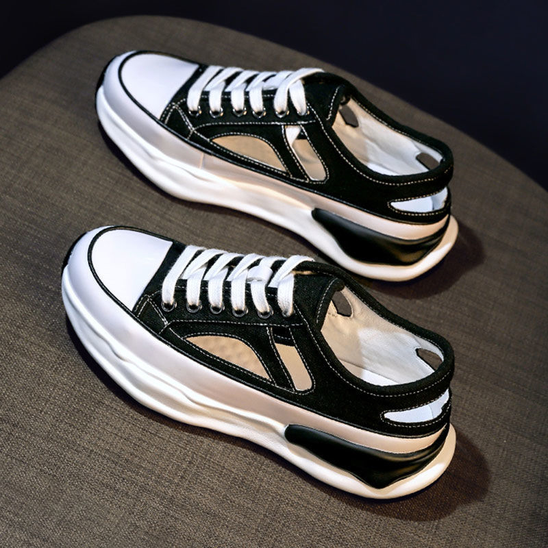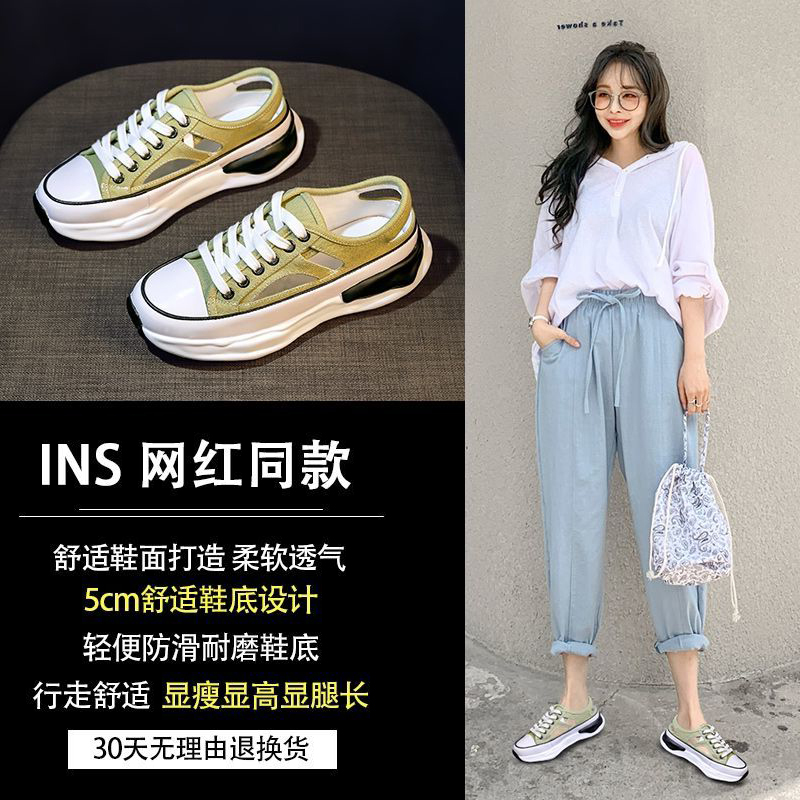 2022 Summer new dongle sandals ladies Korean version hollowed out breathable casual thick bottom thin style Fashion Canvas Shoes