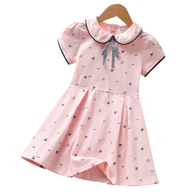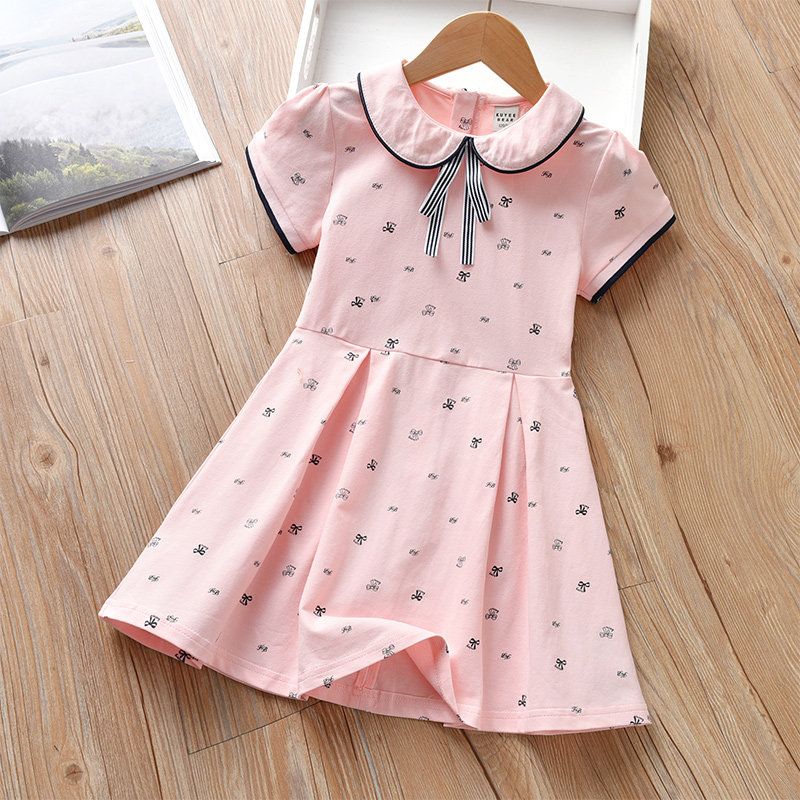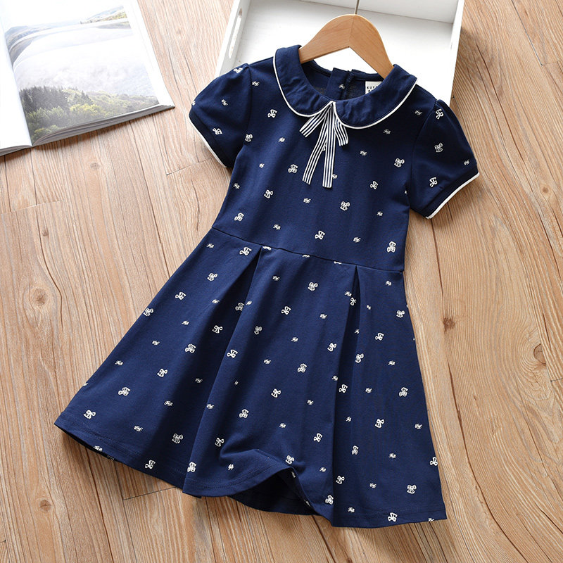 Girls' college style dress, summer style, summer white cotton thin section, 6 little girls, 8 short-sleeved polo, 10 years old and ten