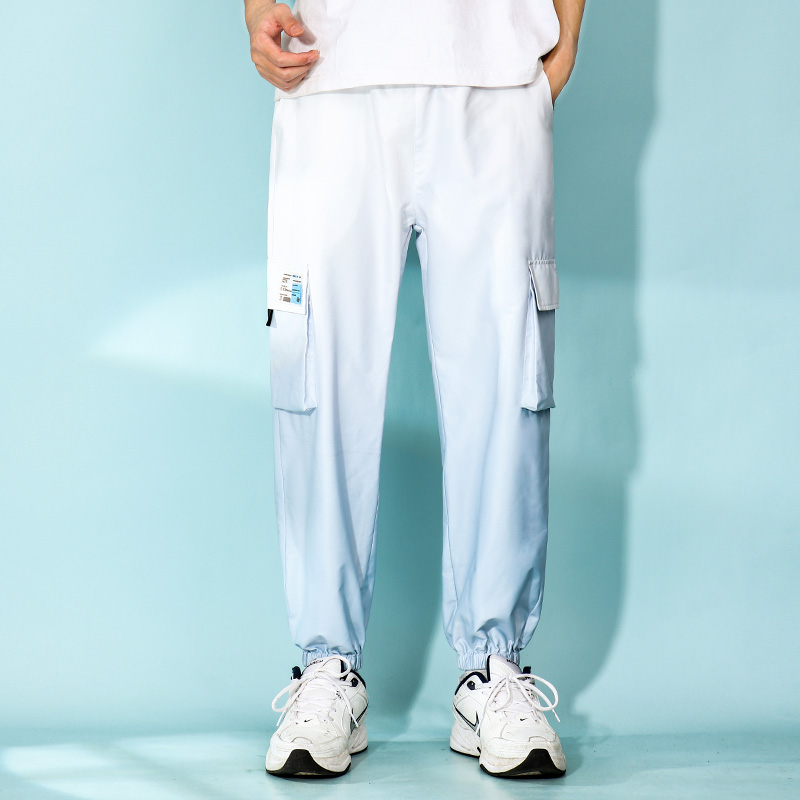 Flammable Japanese gradient leggings overalls men's tide brand summer loose casual straight pocket nine-point pants trousers