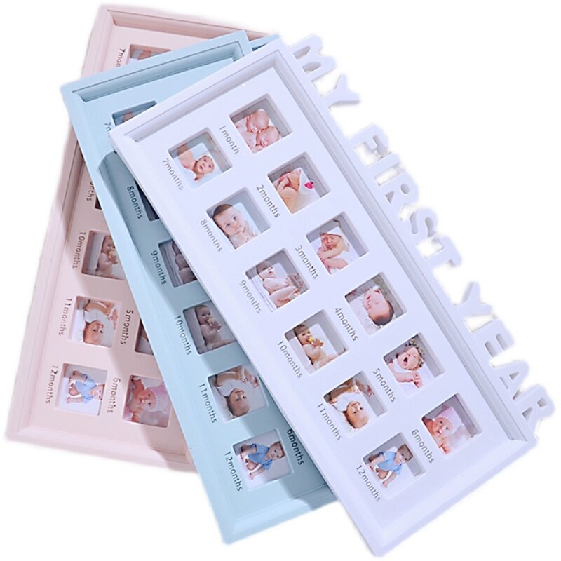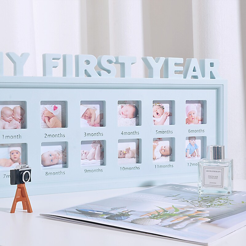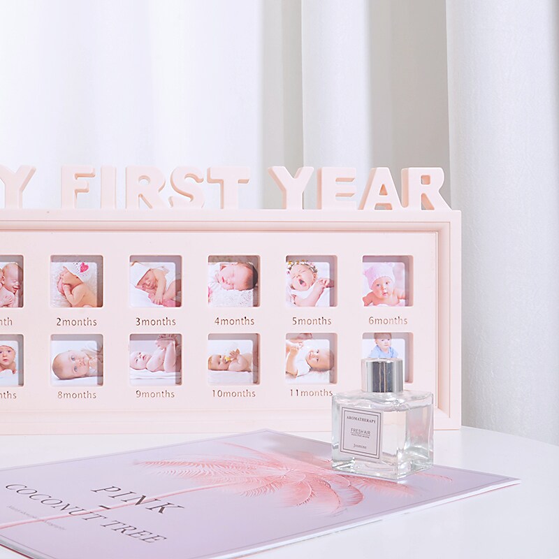 The baby is 12 months old growing in memorial photo frame in the fan birthday team decoration scene layout props
