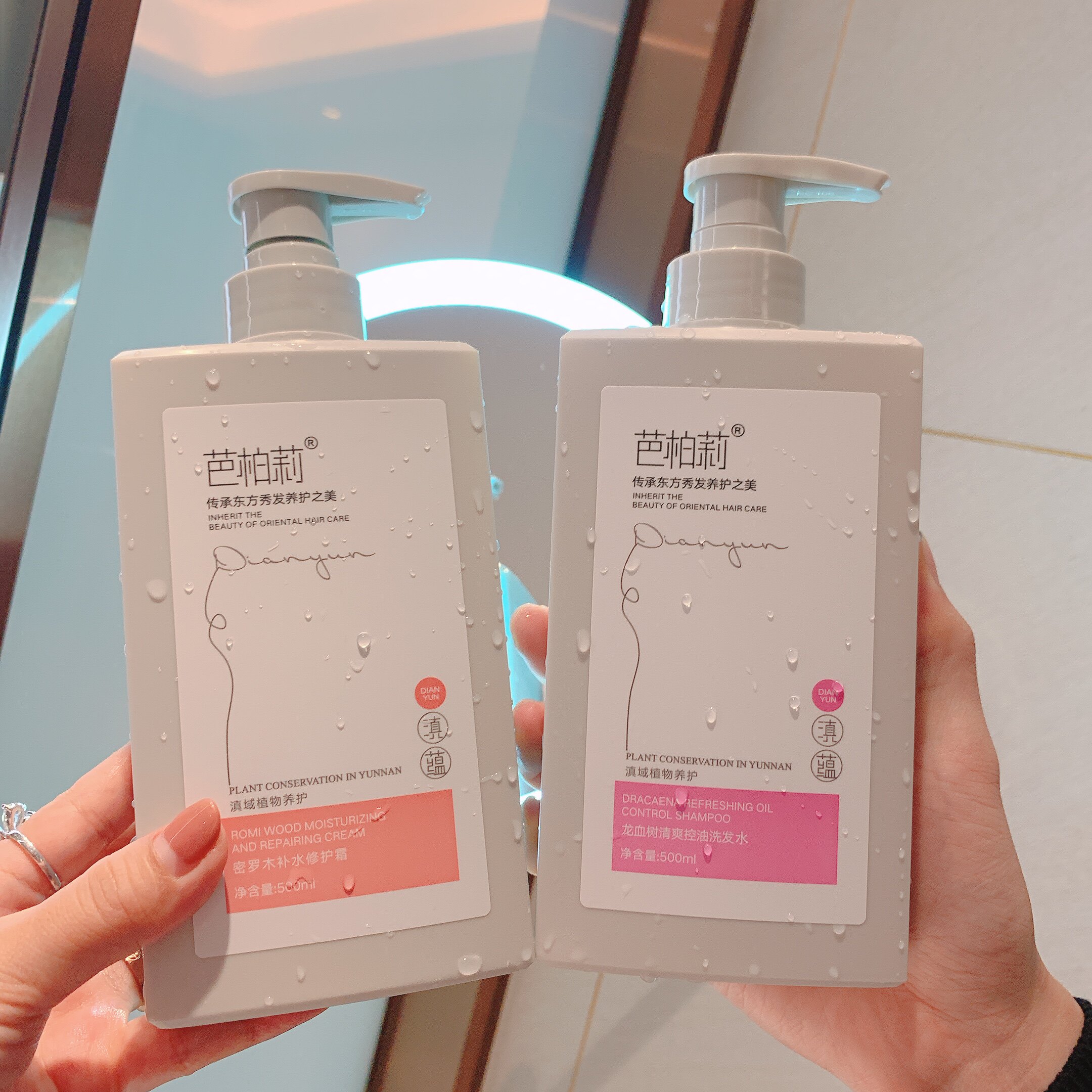 Two bottles of anti-dandruff soothing shampoo, each 500ml Two bottles of moisturizing and smoothing shampoo, each 500ml