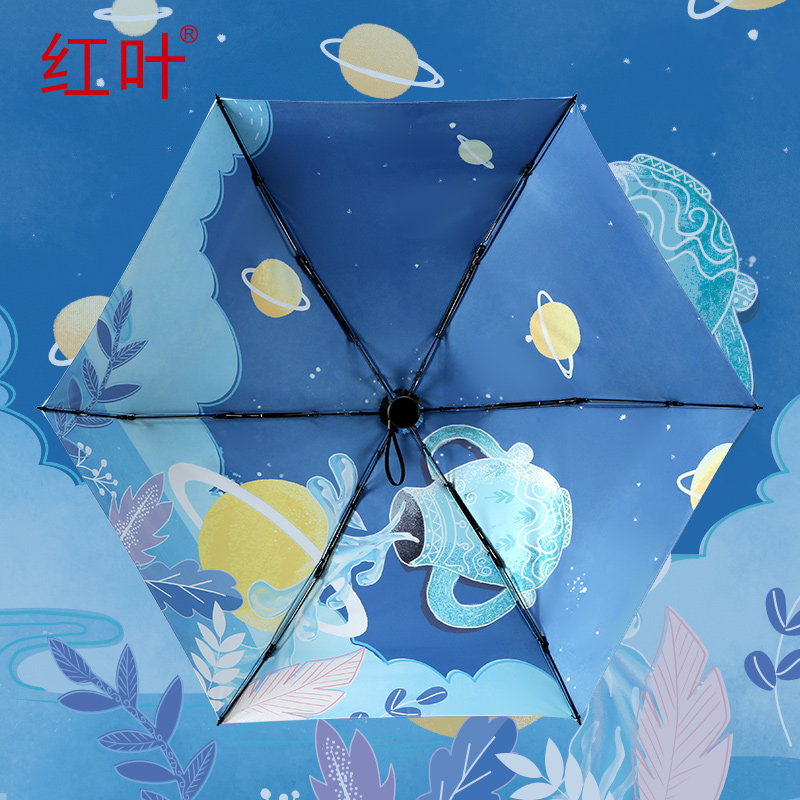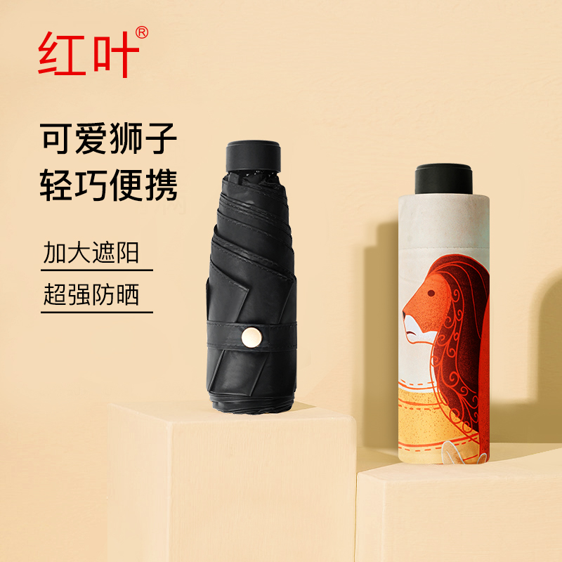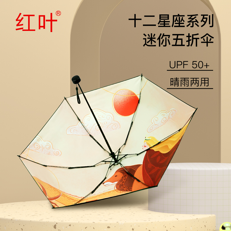 Red Leaf Five Fold Shading Umbrella small portable sun protection UV shading umbrella student umbrella female sunny and rainy