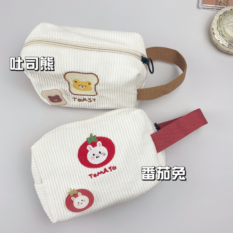 Corduroy wrist cosmetic bag cute portable portable large capacity cosmetics lipstick storage bag wash bag