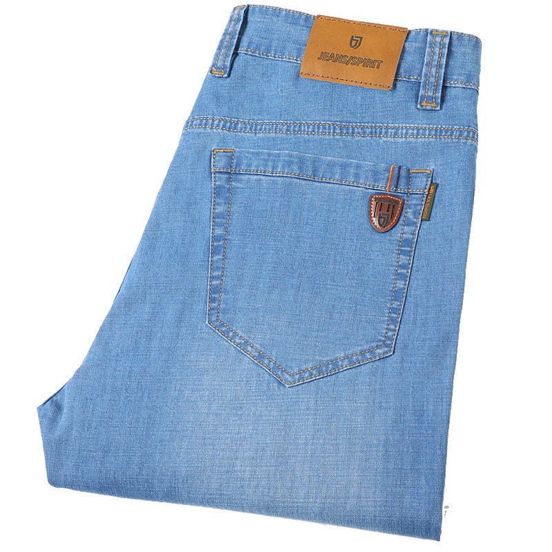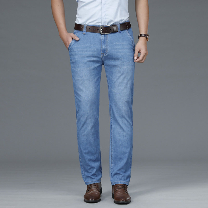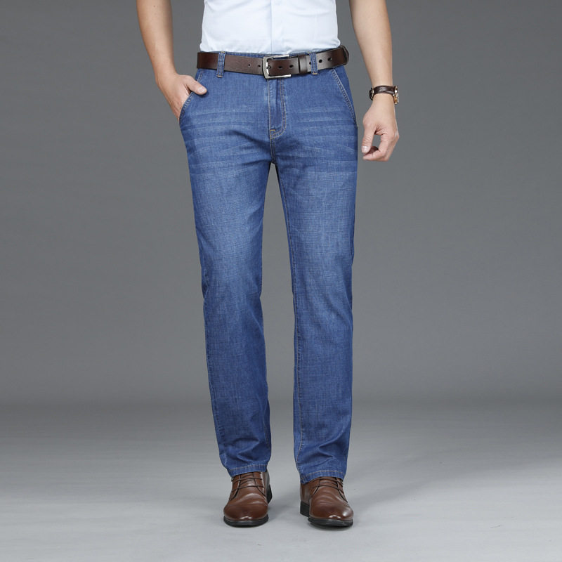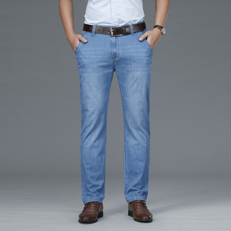 High-end jeans men summer thin straight tube ice wire business leisure old daddy long pants