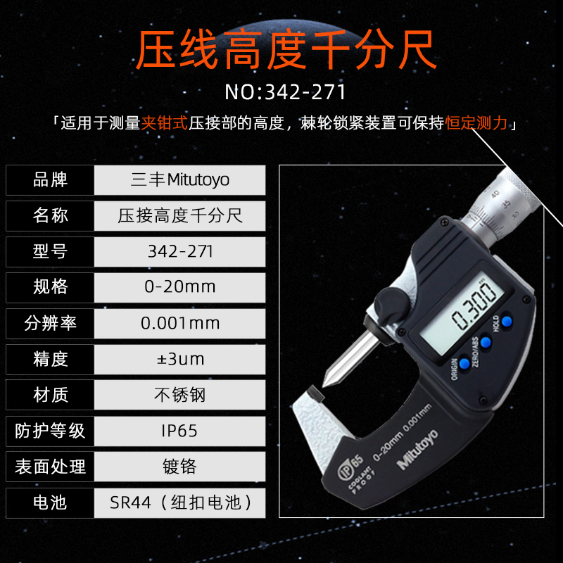 Mitutoyo Japanese Sanfeng Digital Pressure Terminal Height Thousand 342-271 Numerical Thousand Fengyuan 0-20MM