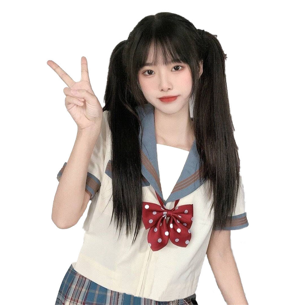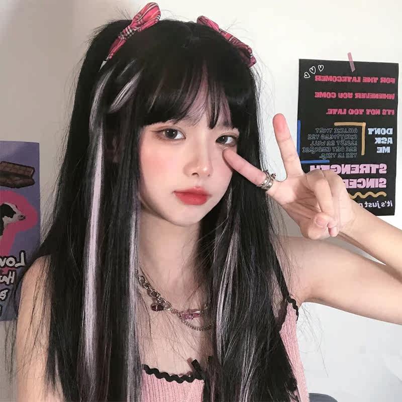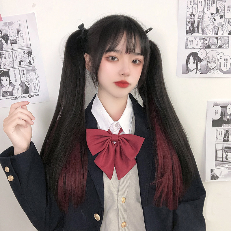 Hanging ear dyed double horse tail wig female straight strap type pair of natural indentation infected wig film