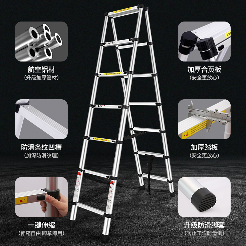Aluminium alloy telescopic ladder engineering ladder portable lifting household indoor safety folding herringbone ladders versatile