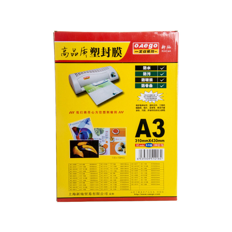 Xincan a3 plastic film HD high transparent document menu Self-sealing film Waterproof thickened scallop film 5c6 7 8 10 14 silk film Photo photo plastic card protection film A4 transparent plastic paper