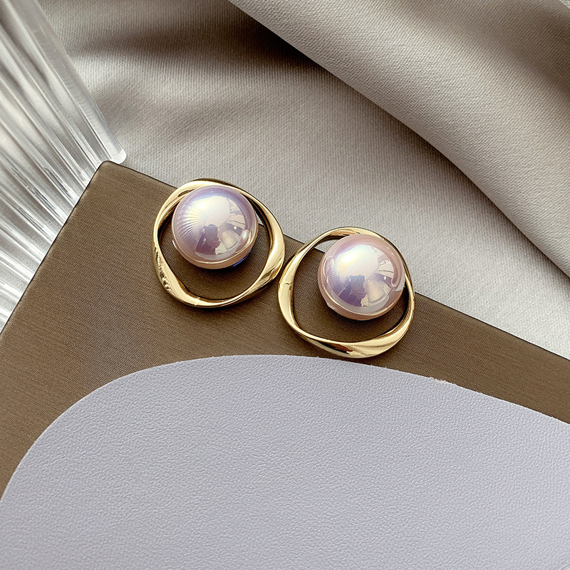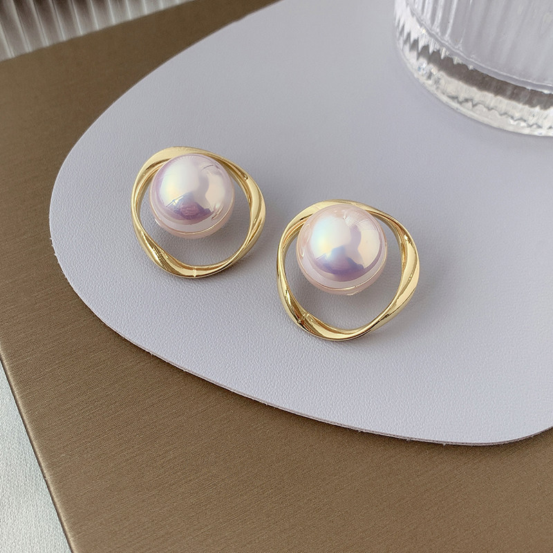 South Korea East gate minimalist Personality Earrings Pearl Geometric Ear Needle Mesh Red Design Sensation Mosquito Coil Pan Without Ear Clip