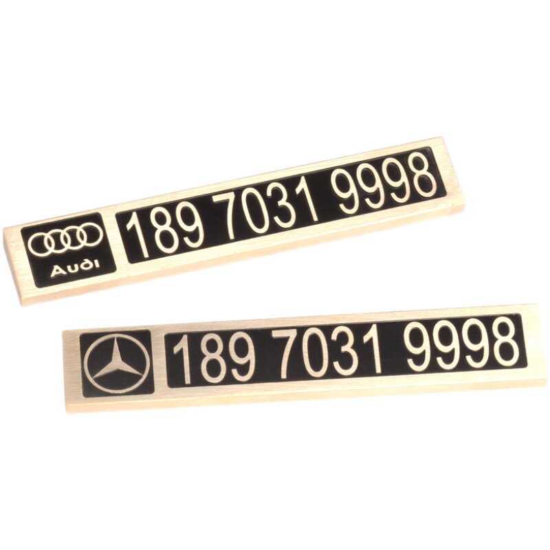 Brass Temporary Parking Signs Benz BMW Audi Car Mark Phone Number Customised Solid Float Engraving Moving License Plate