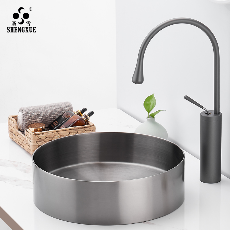 Shengxue gun gray round washbasin Stainless steel table basin Hotel bed and breakfast art basin Single sink one-piece washbasin