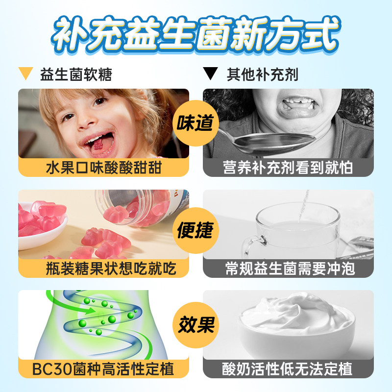 (New date in 2021)High culture ice pole BC30 probiotic children's gummy (sugar-free) active bacteria chewable