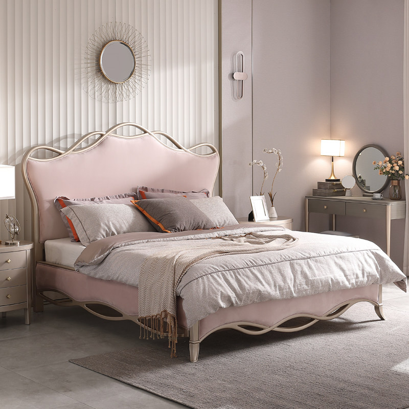 American light luxury modern minimalist master bedroom double bed fabric crown bed fabric soft package 1 8 meters wedding bed princess bed