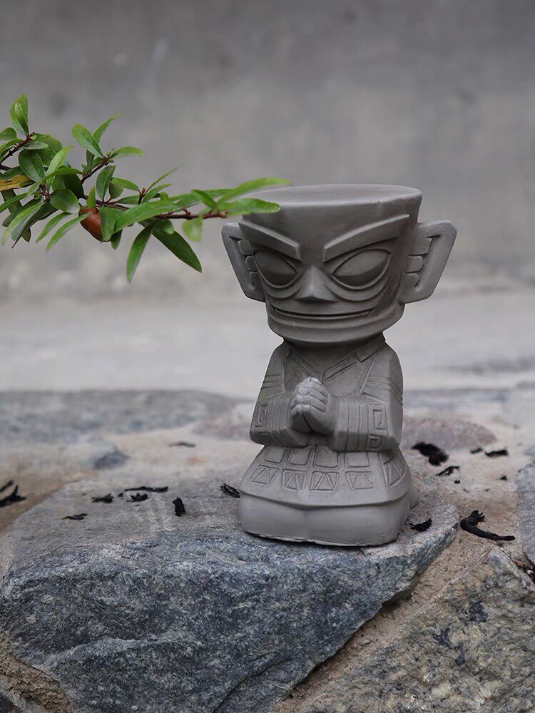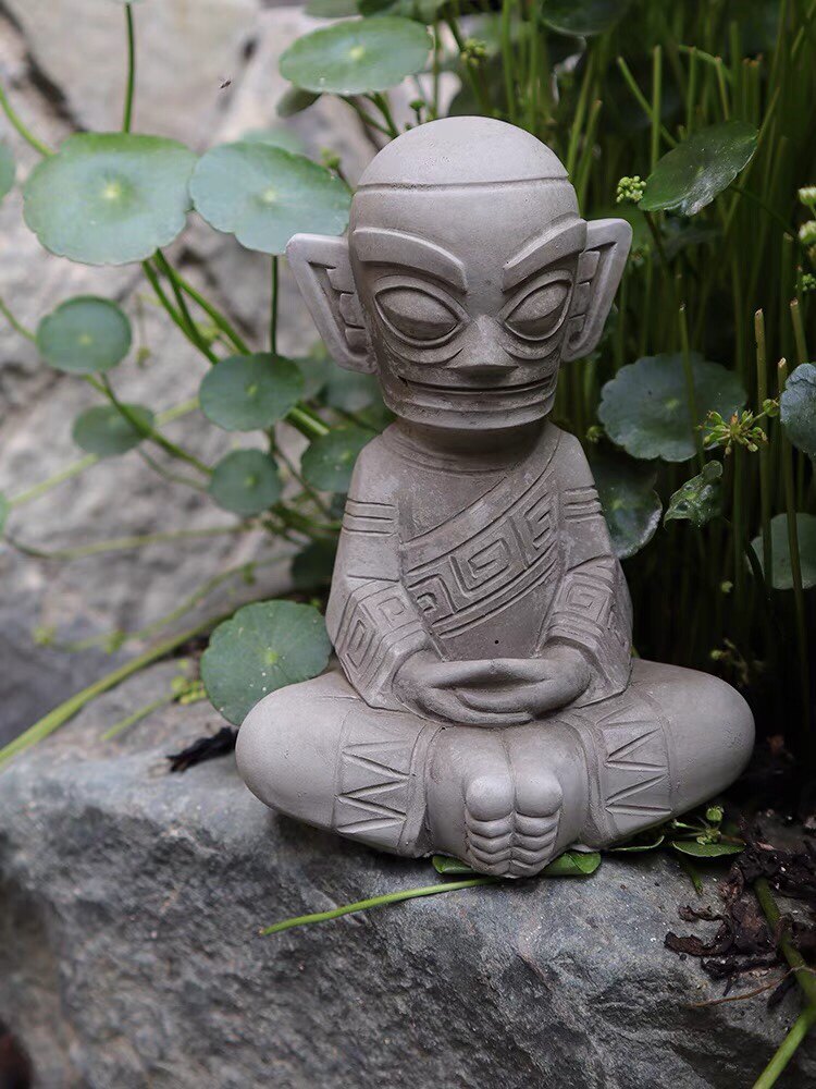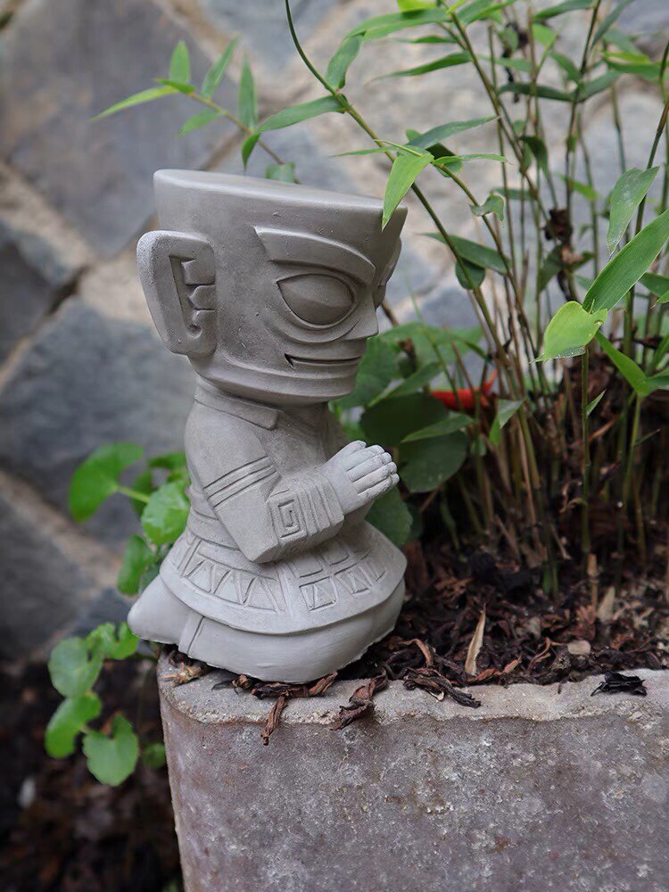 New Chinese creative Sanxingdui praying priest cement sculpture decoration fish tank courtyard garden set decoration