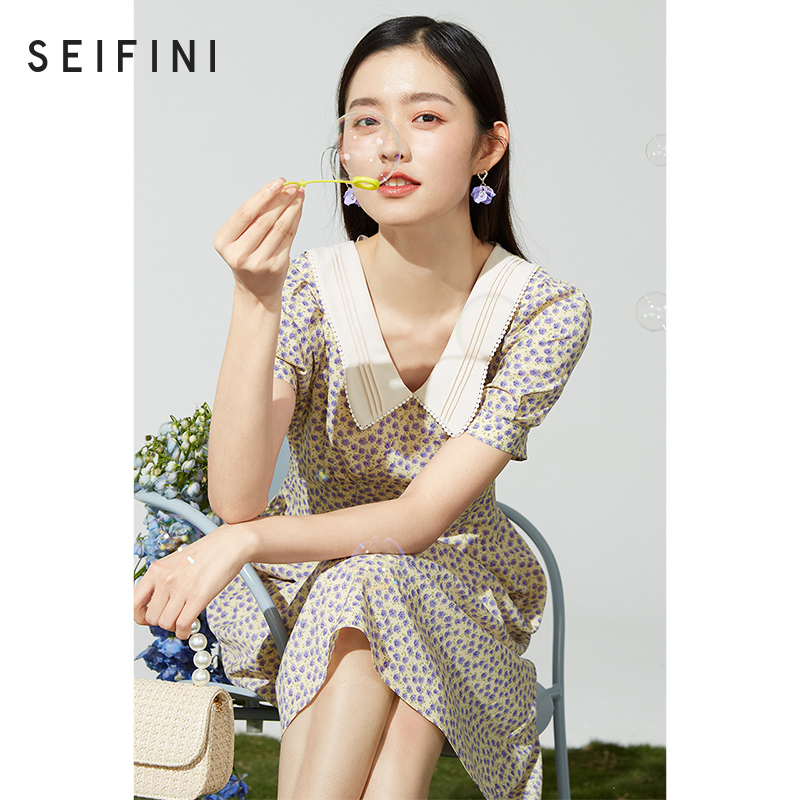 Mall's Tongan Poetry Fan dress Women 2022 New spring V collar waist mid-length skirts 3C5392051