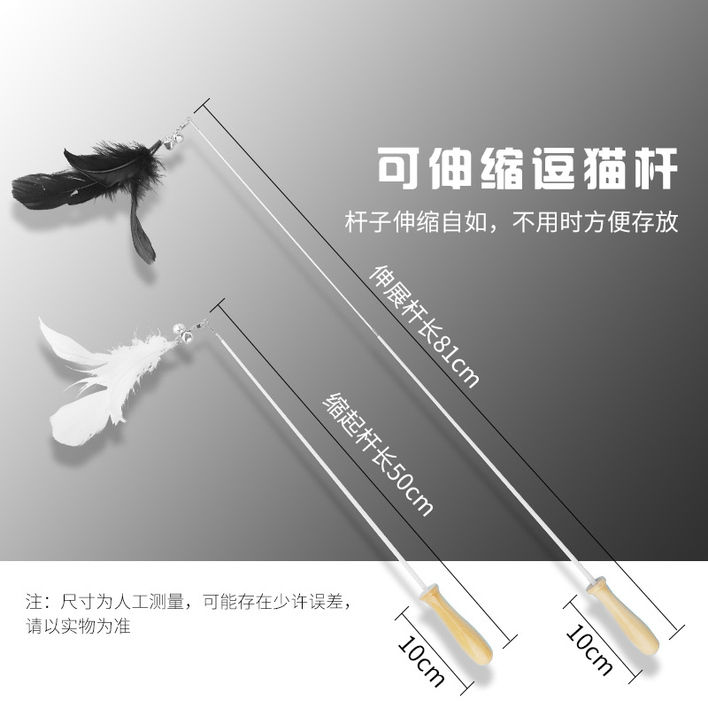 Funny cat stick feather bell retractable with replacement head set long rod solid wood handle cat self-healing toy