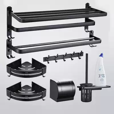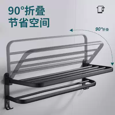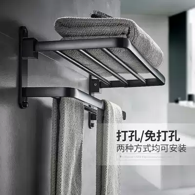 Towel rack Punch-free powder room black space aluminum bathroom storage rack Wall-mounted toilet folding bath towel rack