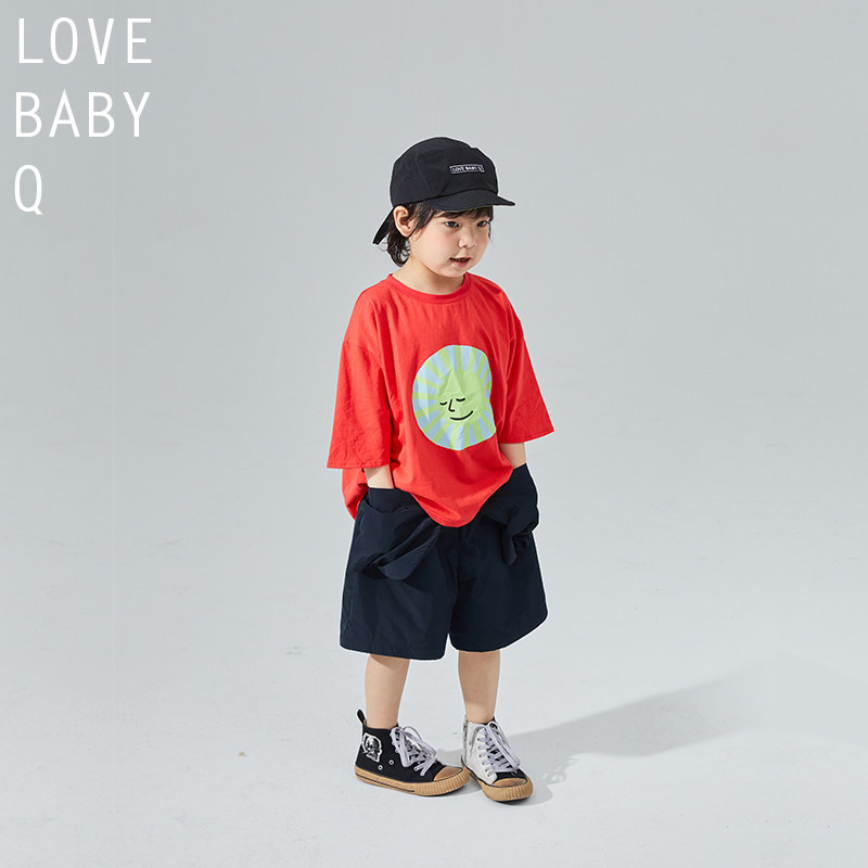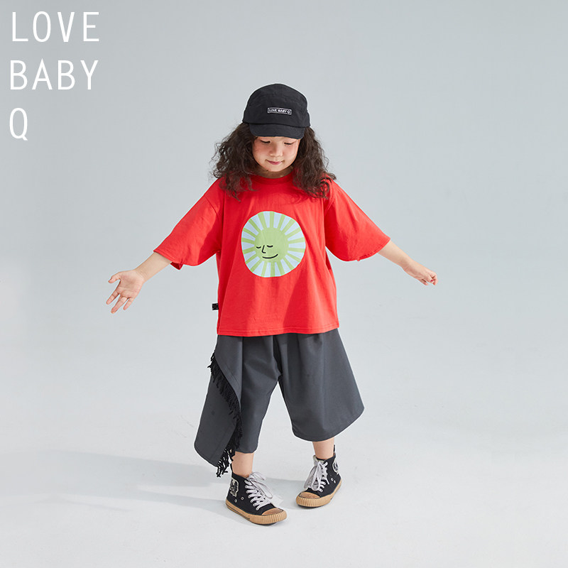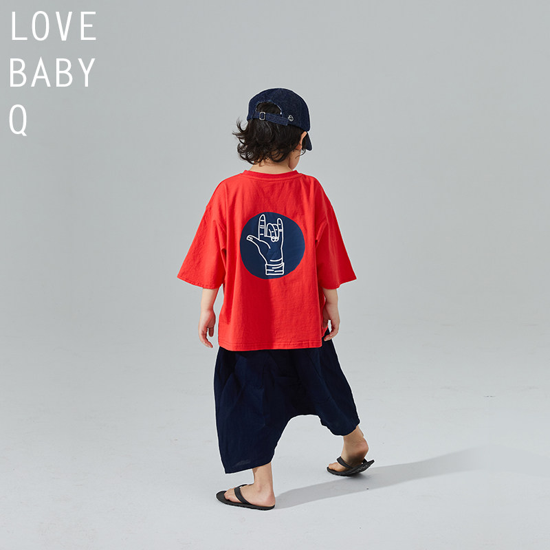 LBQ original child clothing distinctive butterfly sleeve short sleeve casual T-shirt pure cotton double-sided printed male and female