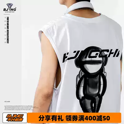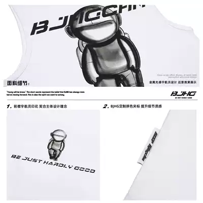 BJHG homemade summer spaceman print sleeveless T-shirt men's tide card loose Sports Basketball hurdle vest waistcoat