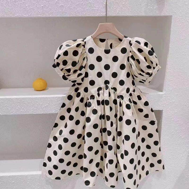 2021 Children Clothing Summer New Girl Han Edition Fashion Great Wave Dot Bubble Sleeves Foreign Dress Cotton Fabric Princess Dress