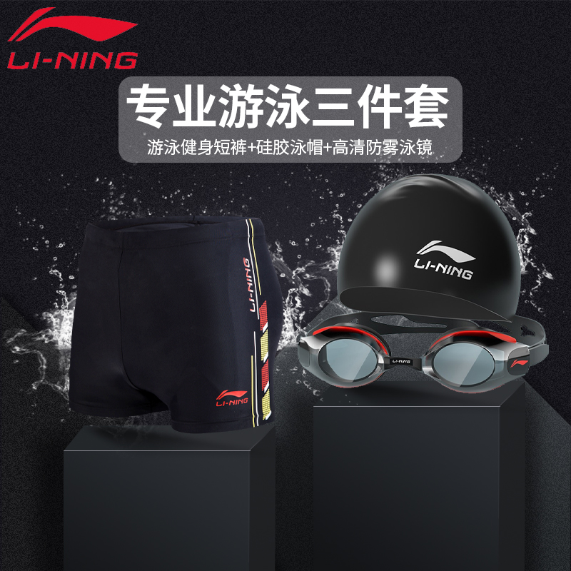 Li Ning swimsuit men's suit blouses 50% flat angle swimming trunks swimming goggles swimming hat anti-embarrassment professional training swimming gear
