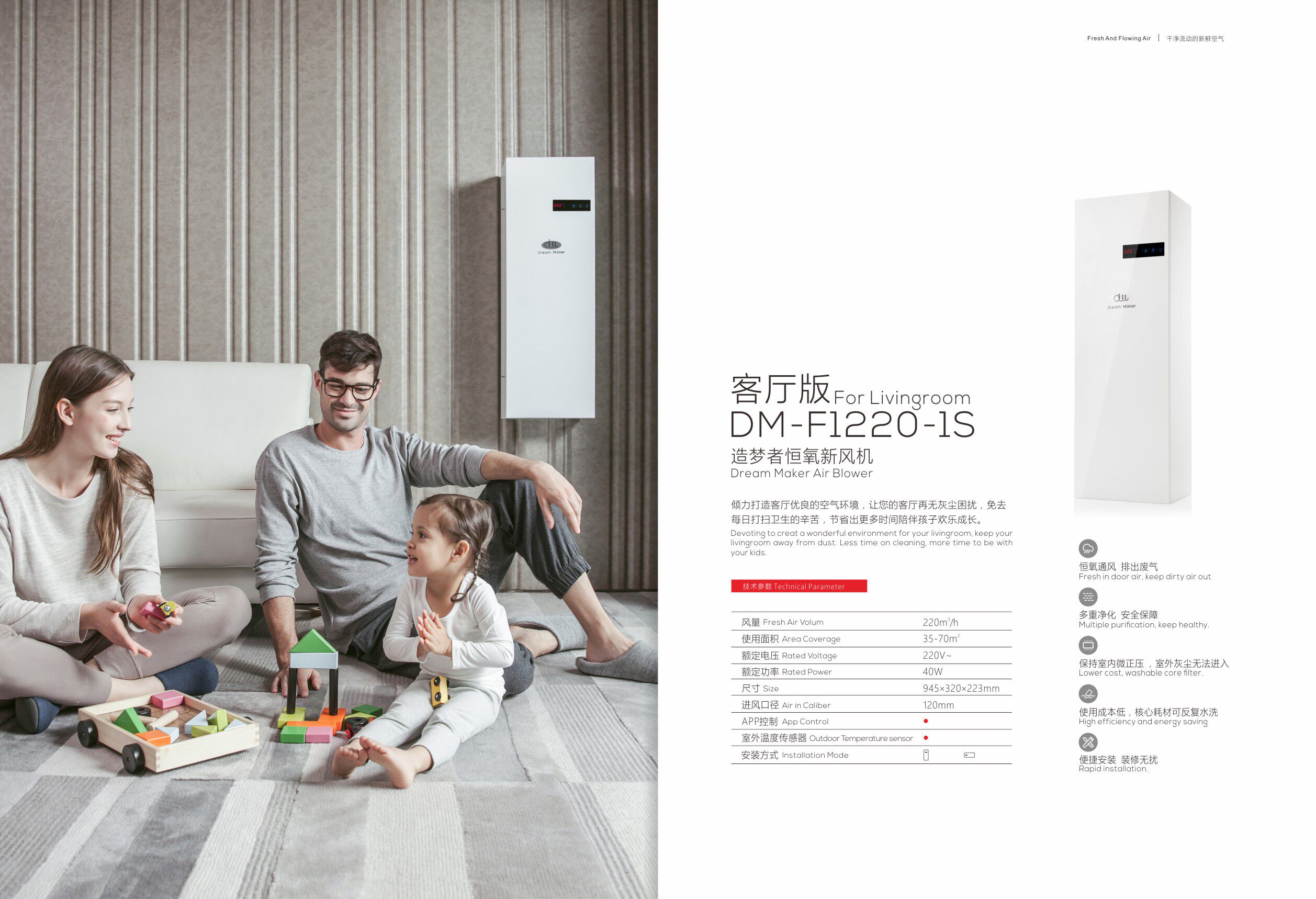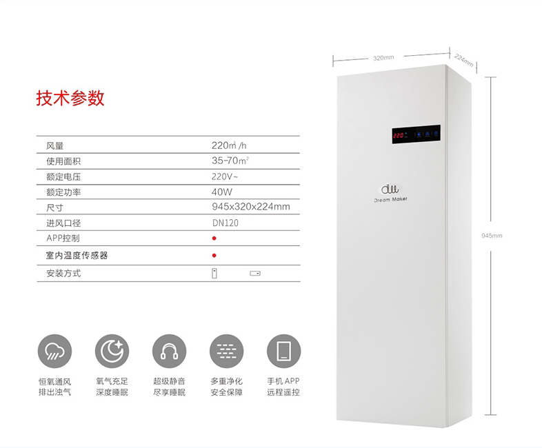 Dreamer new fan home fresh air system wall-mounted air purifier 220 air volume in addition to formaldehyde haze