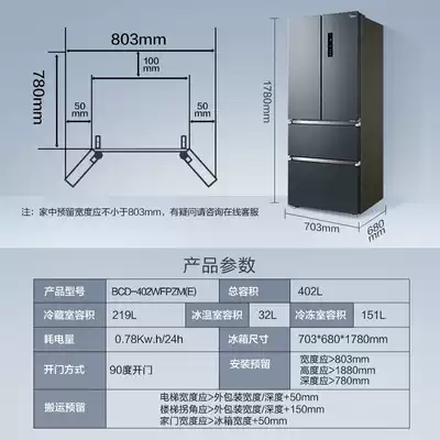 Midea 402 liters French multi-door refrigerator 4 four-door frost-free frequency conversion first-class energy-saving household official smart home appliances