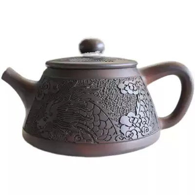 Kung Fu tea set Tea ceremony accessories Purple clay Teapot Handmade carved purple clay teapot Famous stone scoop pot Yang carved black pottery Teapot