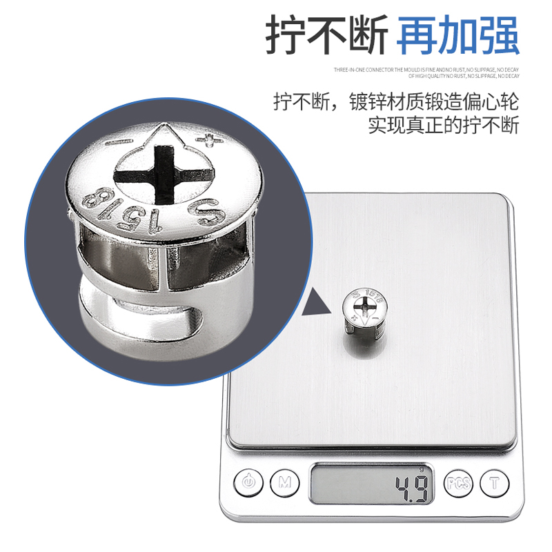 Zinc alloy three-in-one connector nut eccentric wheelbed wardrobe board office desk assembly hardware accessories