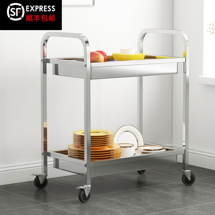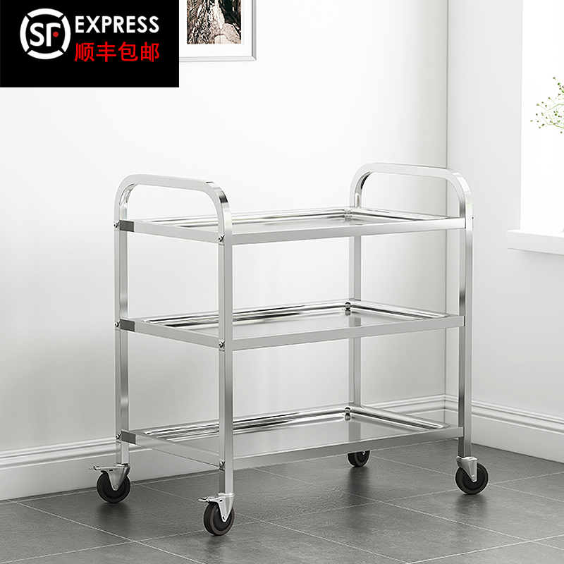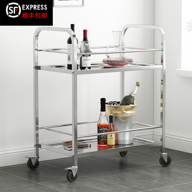 Thickened stainless steel dining car, three-layer trolley, two-layer bowl truck, wine truck, food truck, mute truck, hot pot truck