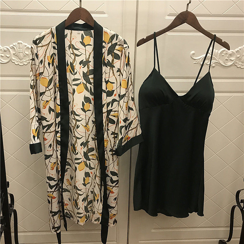 Korean version of pajamas women's summer sexy suspenders nightdress with chest pad silk nightgown two-piece middle-aged temperament home service