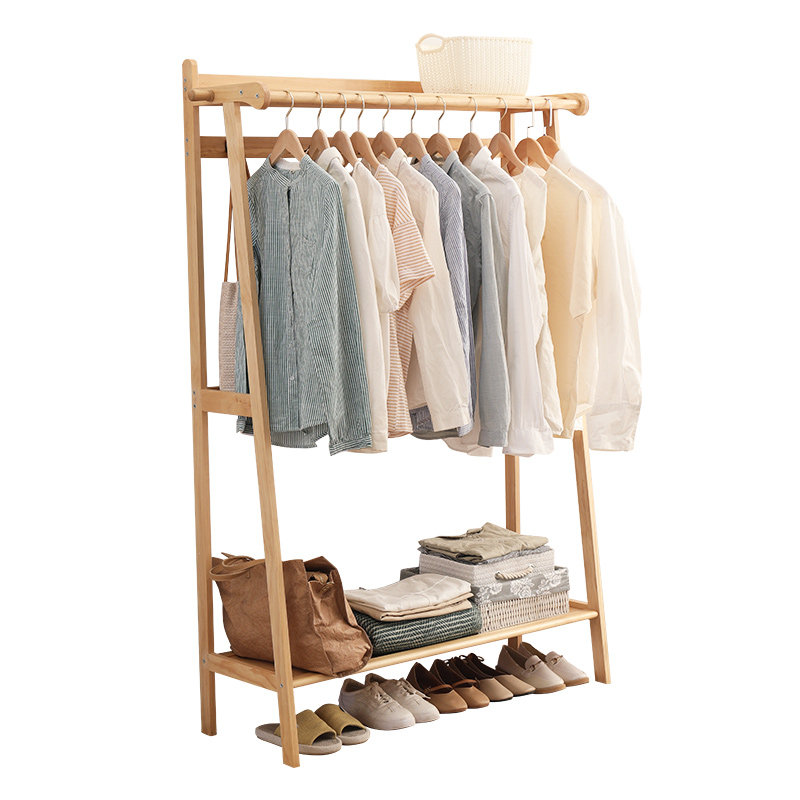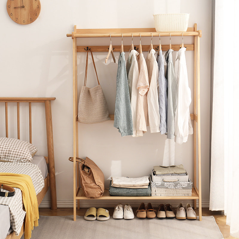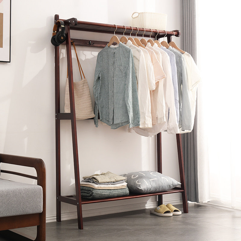 Solid wood hanger household clothes drying rack coat rack hanger floor bedroom Nordic hanger simple clothes rack