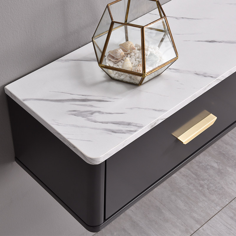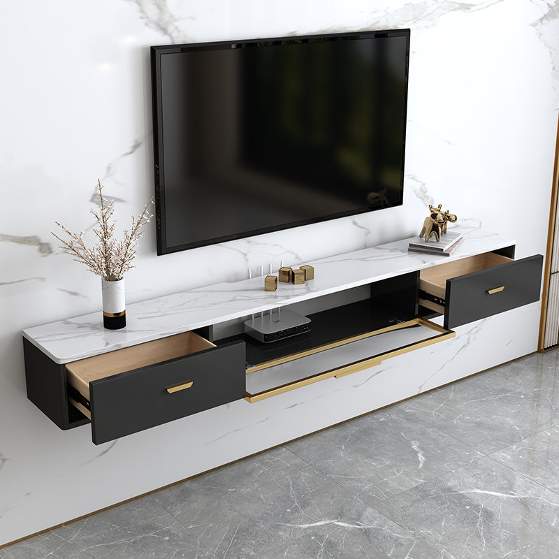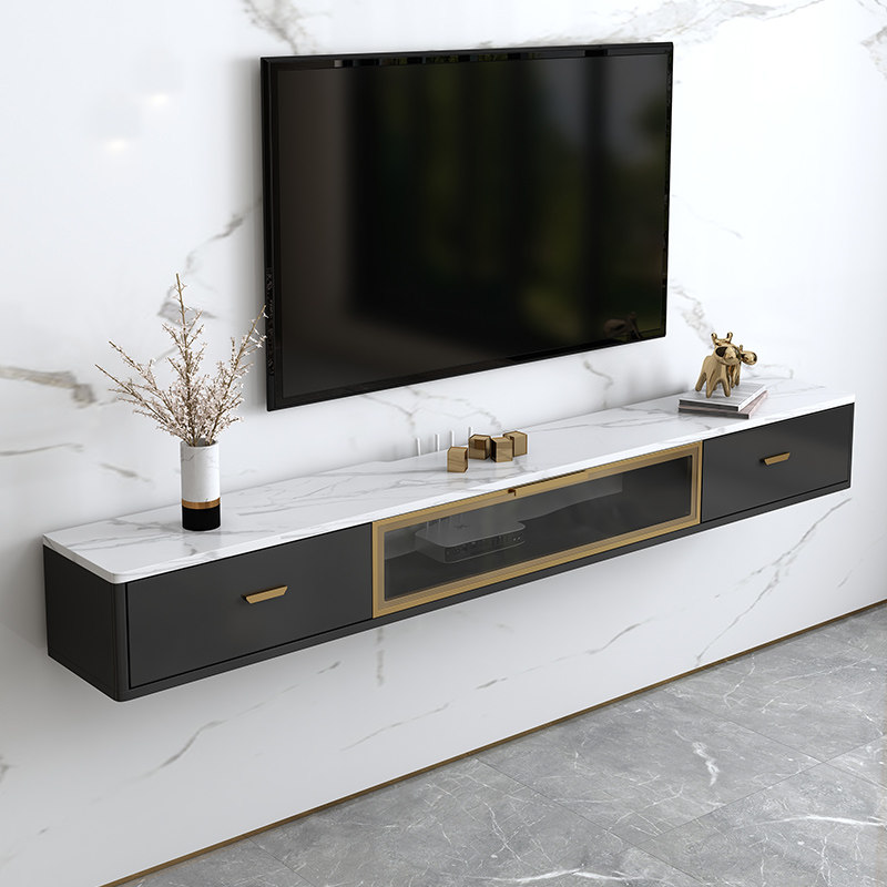 Small apartment light luxury imitation rock plate pattern wall-mounted TV cabinet simple modern living room hanging wall hanging cabinet narrow