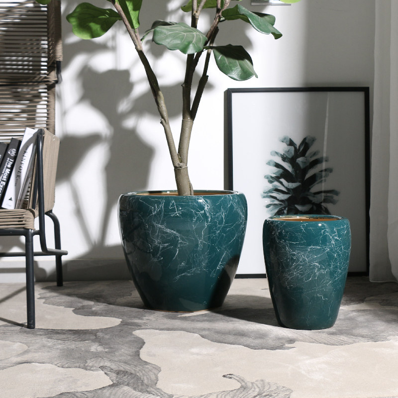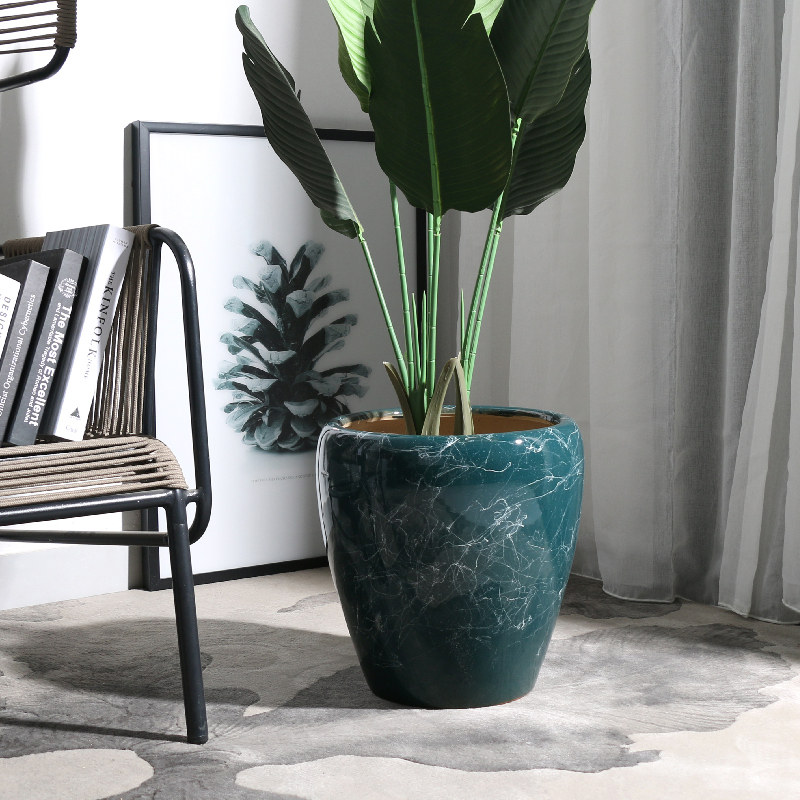 Extra large ceramic flowerpot European-style living room household oversized floor-to-ceiling happiness tree large-caliber creative balcony planting tree height