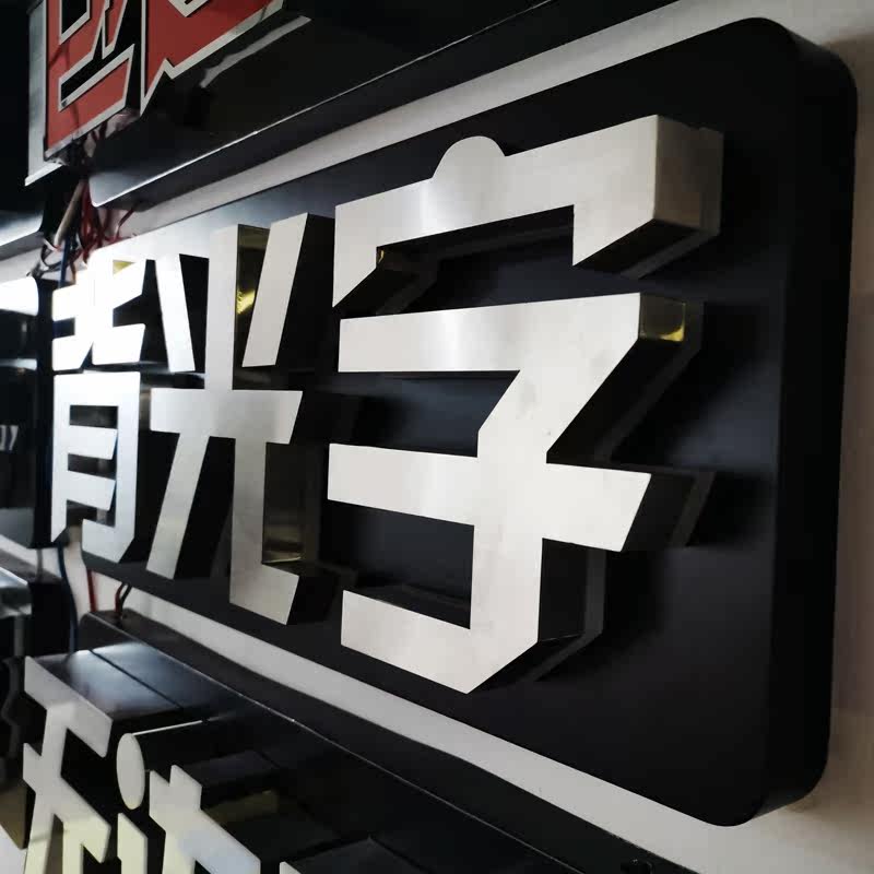 Customized signage door glossy letter edge stainless steel back lithography stainless character stainless steel light emitting character LED