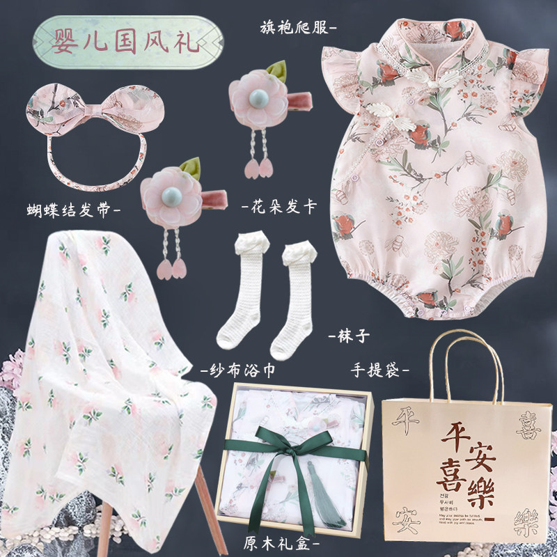 Newborn Baby Gift Box Summer Clothes Suit Delivery Upscale Women's Baby Full Moon 100 Days Old China Wind Thin