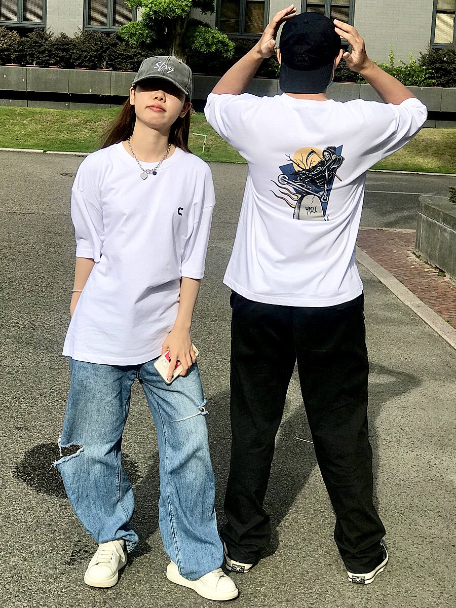 CSD clothes Death and you heavy 240G summer drop shoulder pure cotton short-sleeved T-shirt men and women round neck loose