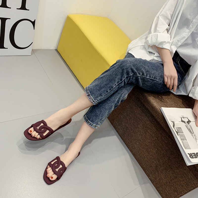 Pig nose flat bottom outside wearing sandals and slippers women 2021 summer new net red word beach jelly holiday slippers women