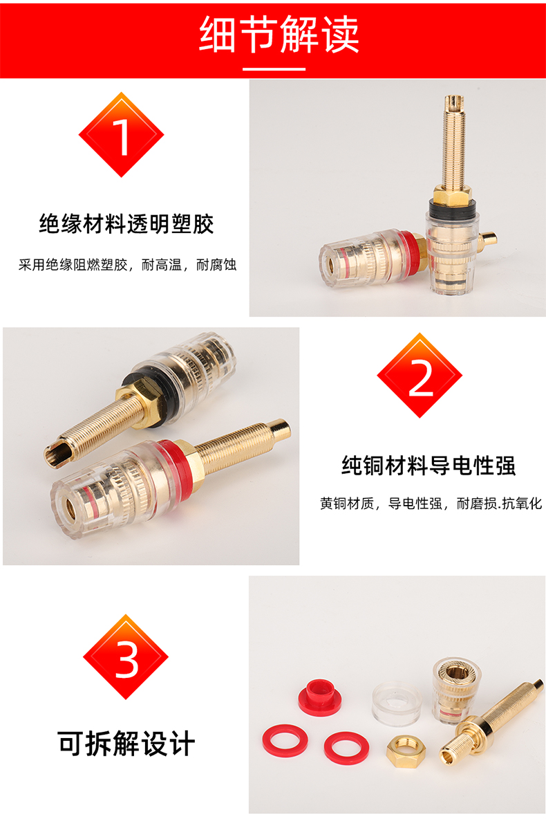 Crystal sleeve pure copper speaker audio high-end extension terminal horn terminal banana plug socket welding