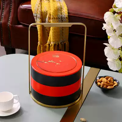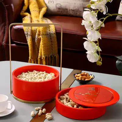 Bucaiqi wooden auspicious pattern basket metal light luxury lacquerware food box Chinese style three layer dried fruit storage box ornaments
