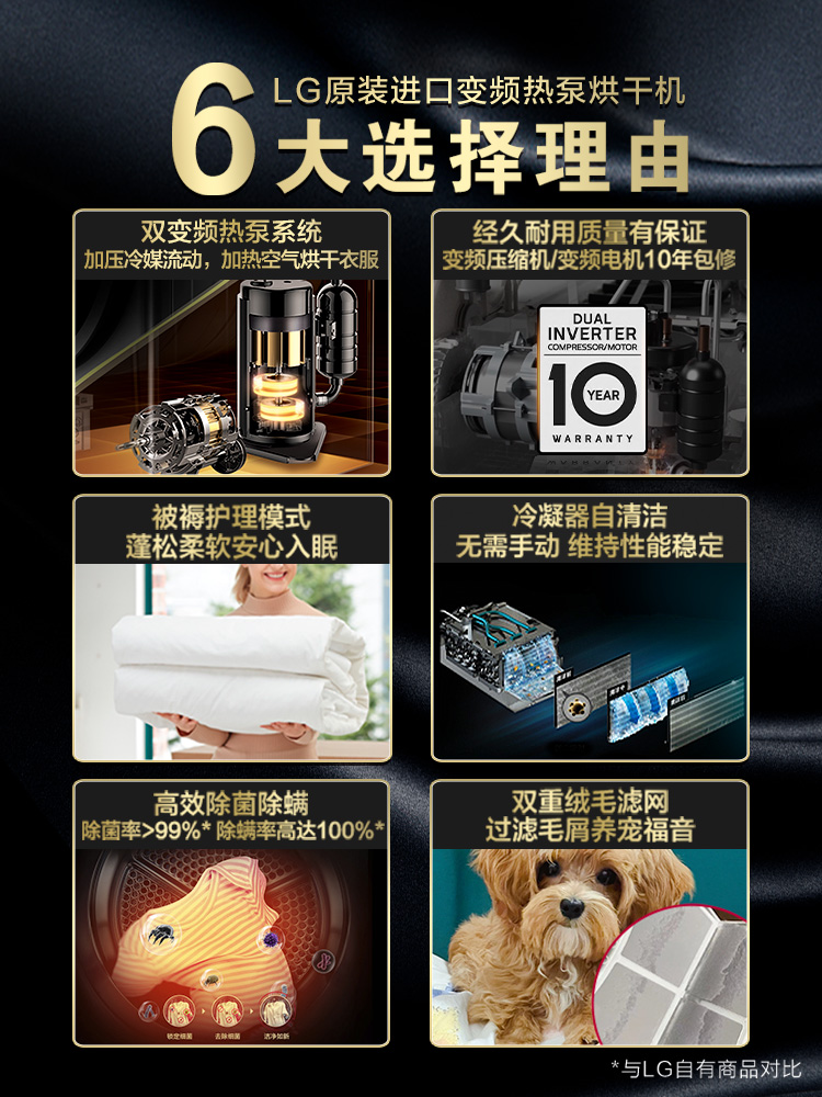 (Double frequency conversion heat pump system) LG imported 10kg sterilization and mite dryer bedding care RH10V9AV4W