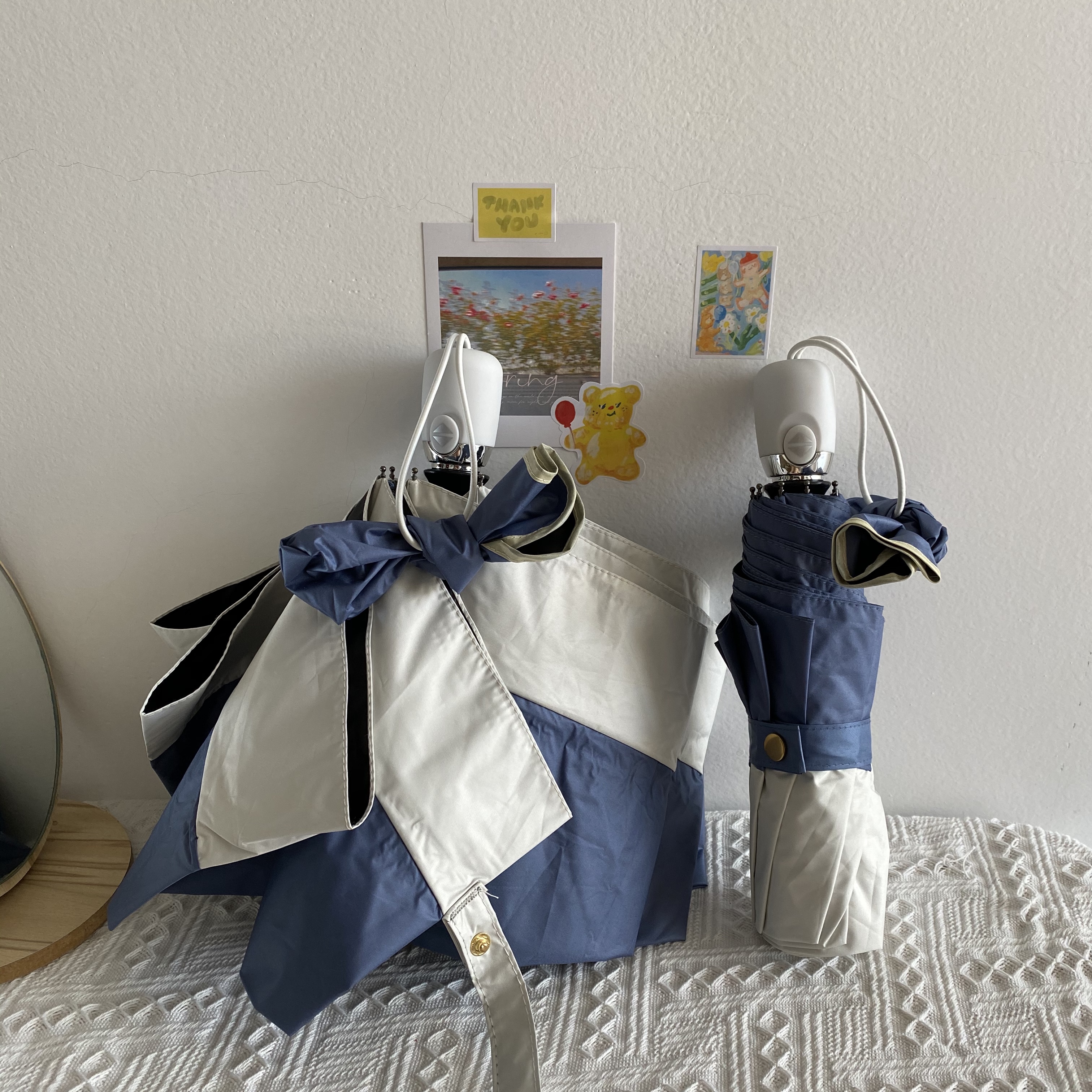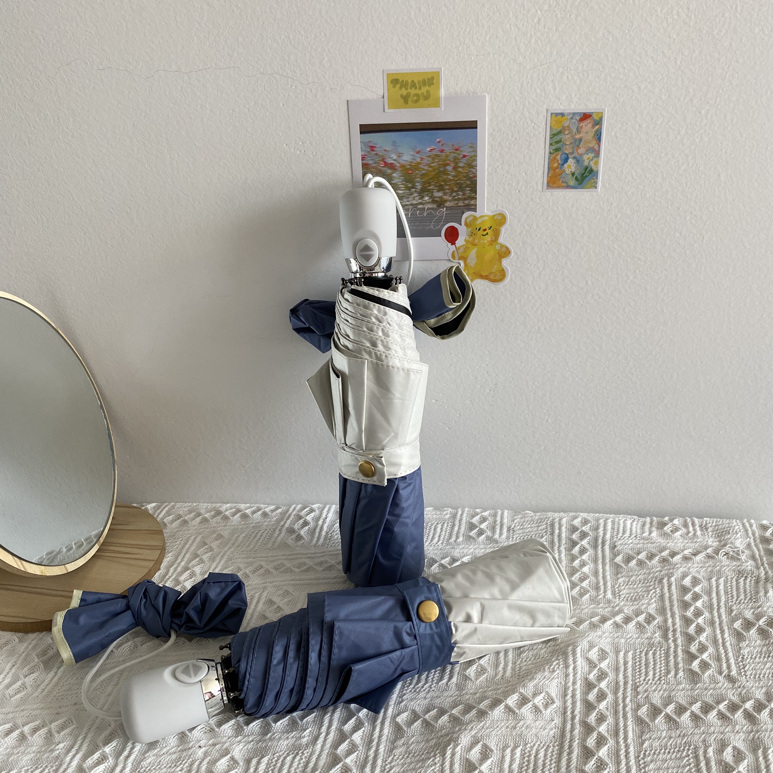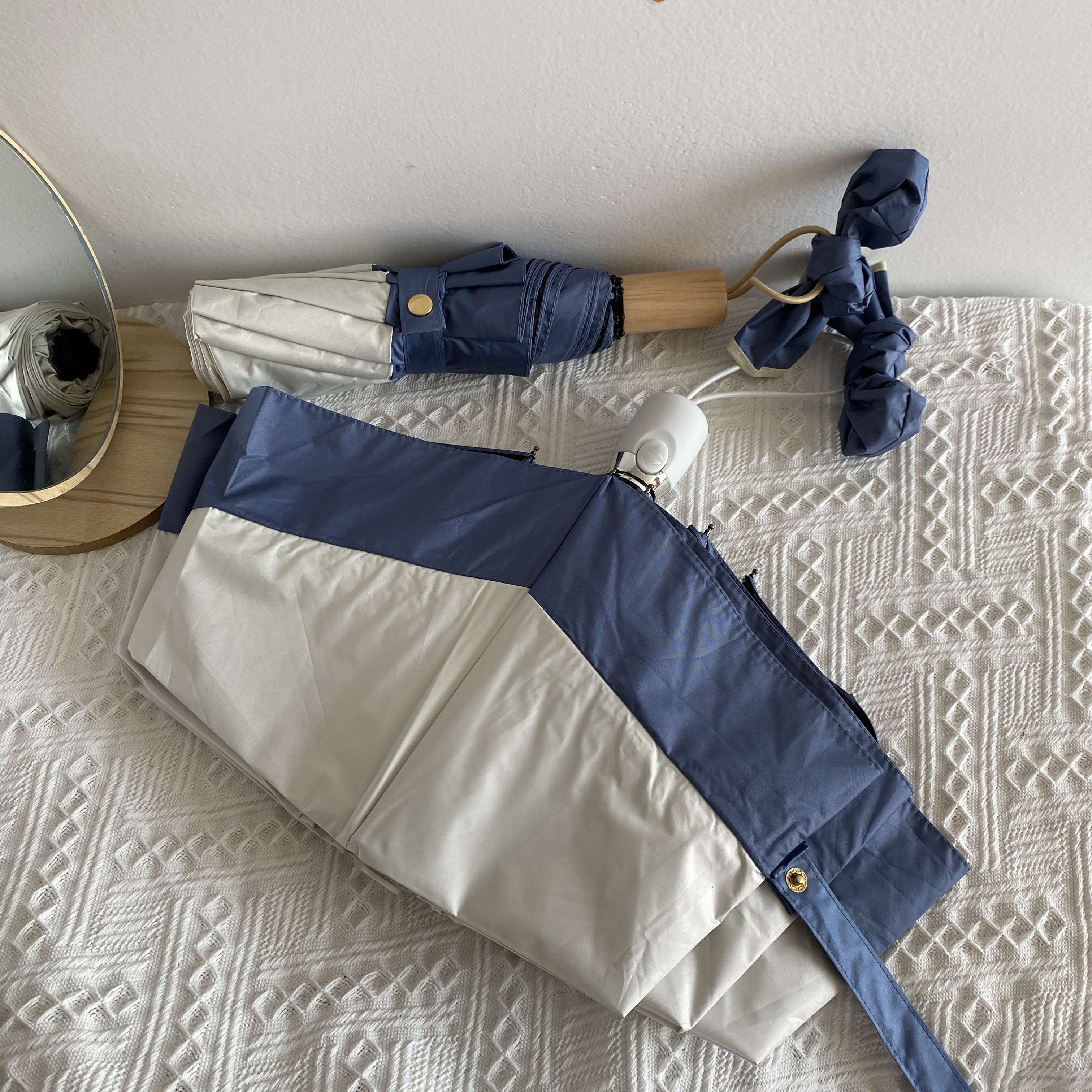 White and blue stitching manual umbrellaWhite and blue stitching automatic umbrellaBlue and white stitching manual umbrellaBlue and white stitching automatic umbrella